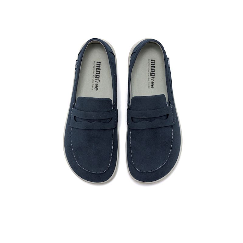 Mocasín barefoot azul marino para hombre Mustang Free, diseñado en microfibra ligera y transpirable, ideal para primavera-verano. Este calzado minimalista incorpora puntera ancha, suela plana (zero drop) y gran flexibilidad, favoreciendo la pisada natural y la comodidad diaria. Desarrollado junto al traumatólogo deportivo Dr. Juanjo López, es perfecto para quienes buscan un zapato cómodo, versátil y respetuoso con la anatomía del pie.
